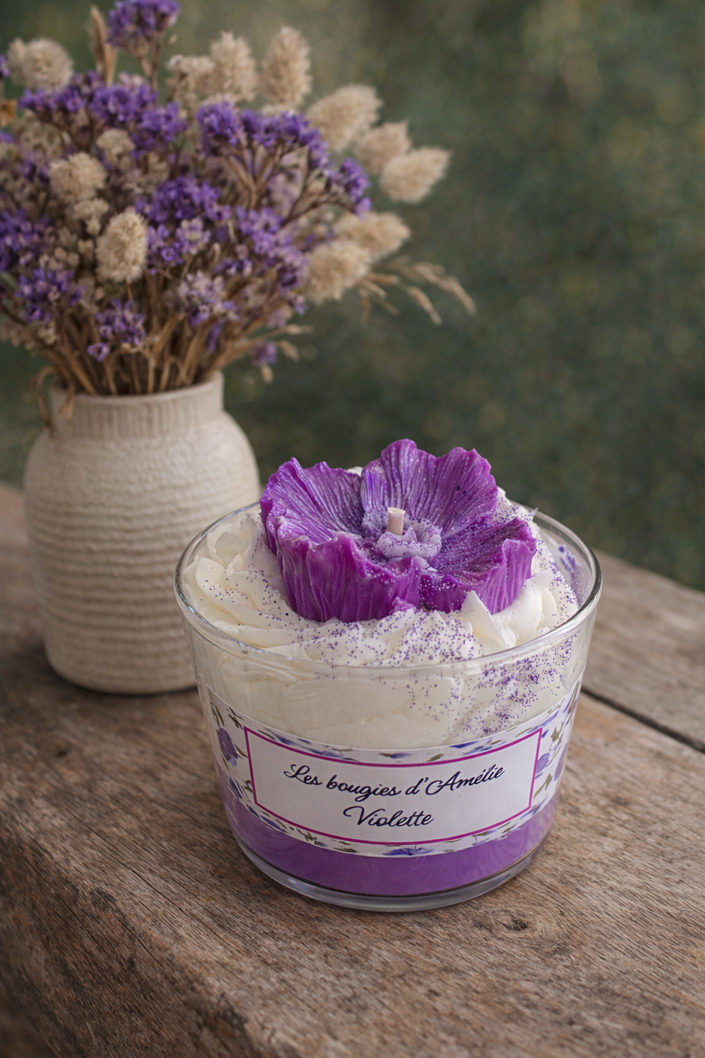 Notes: Les photos présentées sur le site sont non contractuelles. Les bougies étant faites à la main, elles peuvent présenter des légères différences de couleur, poids, aspect visuel de la chantilly, c’est aussi ce qui rend chaque bougie unique !
